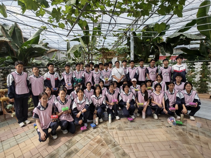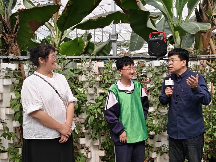 如果说萌宠互动与青团制作是“趣味课堂”,那么温室探究便是一场“科学盛宴”。在芦南村智慧温室里,同学们化身“温室探索家”,探究温室恒温恒湿的科学原理,更以小组为单位,协作完成生态盒解密任务卡,一步步解锁生态盒的制作步骤与材料搭配。地理学科的“气候调节”、生物学科的“生态平衡”知识,不再是抽象的概念,而是融入动手实践的具体体验。