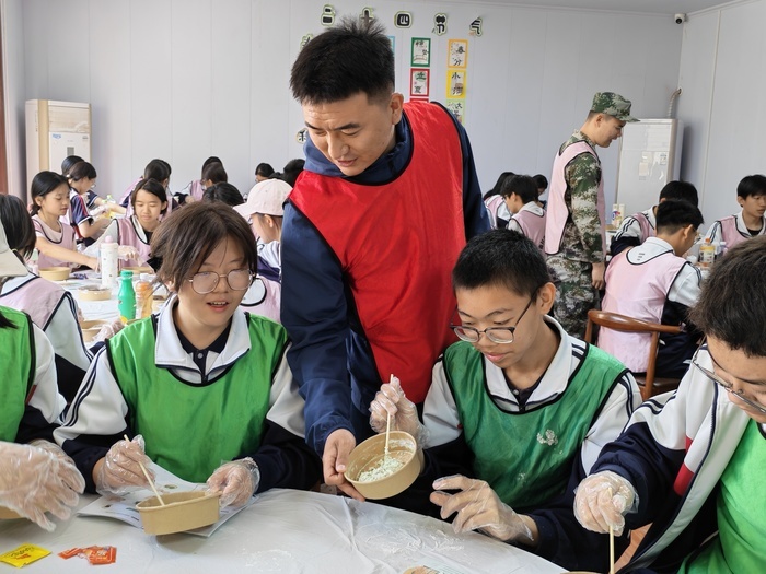 在芦南研学基地,食育老师带领同学们用糯米粉、艾草汁、红豆沙制作青团。“艾草汁要慢慢加,揉面要均匀、无颗粒,这样青团才会软糯Q弹。”老师一边示范,一边讲解青团的民俗渊源。这道承载着春日记忆的传统小吃,不仅是舌尖上的美味,更是传统文化的载体。孩子们认真揉面、包馅、搓圆,在动手实践中,既锻炼了动手能力,也读懂了传统食育文化的内涵,让传统文化传承不再是书本上的文字,而是可尝、可做、可感的生活体验。