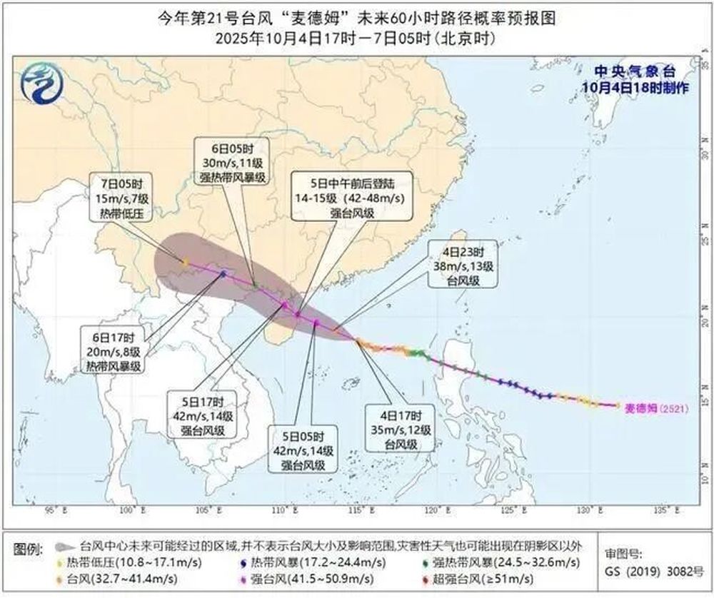 ●中央气象台发布今年首个台风红色预警:今年第21号台风“麦德姆”5日将登陆广东电白至海南琼海沿海。