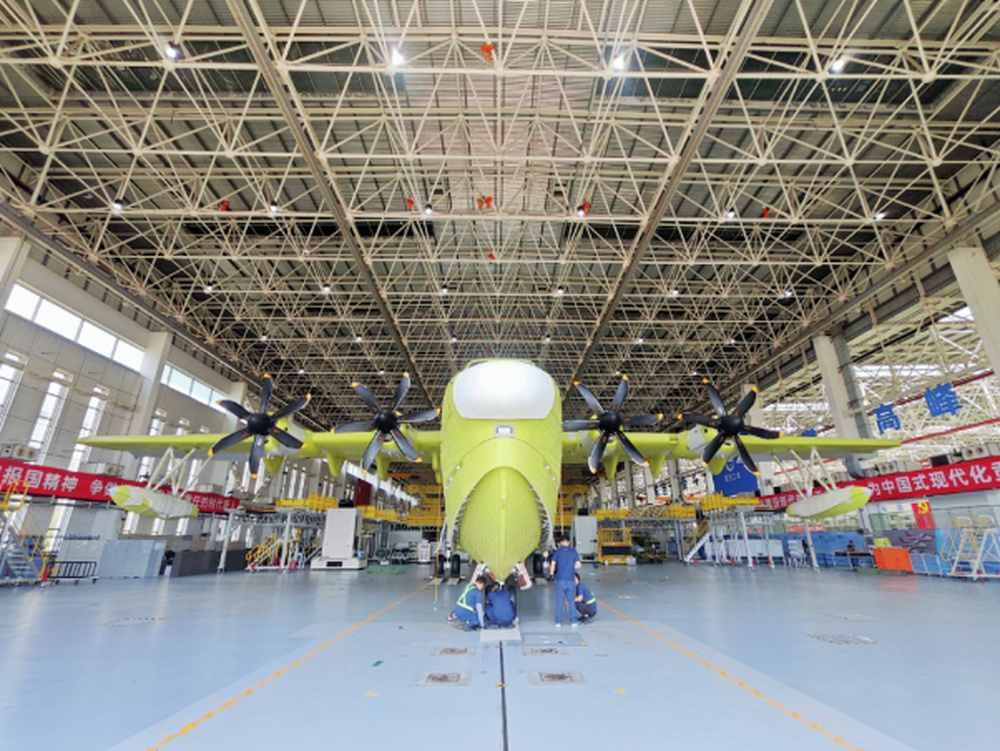 ●近日,我国大型民用水陆两栖飞机AG600“鲲龙”批产第三架机总装下线并圆满完成生产试飞。