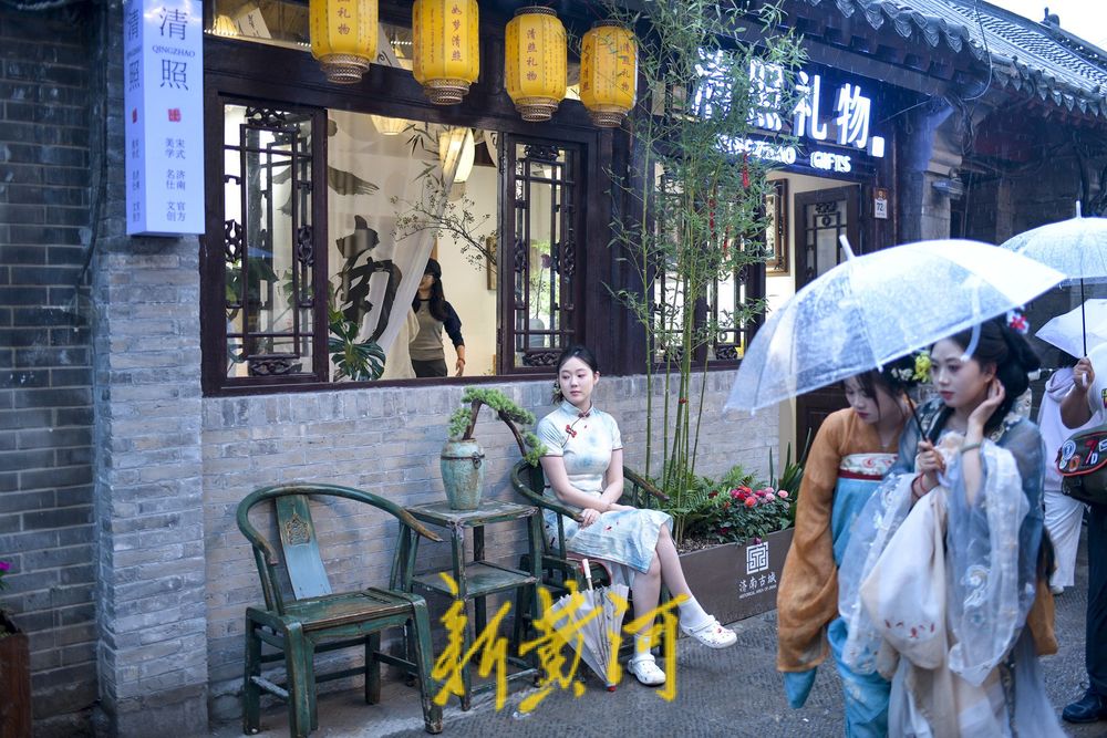 国庆假期,在济南老城区的后宰门街,街巷南侧临街的多个院落整体修缮完成后引入多个商家,其中清照小院以李清照IP为核心,打造沉浸式宋词体验空间,推出团扇、词章印章、定制雪糕等文创产品。