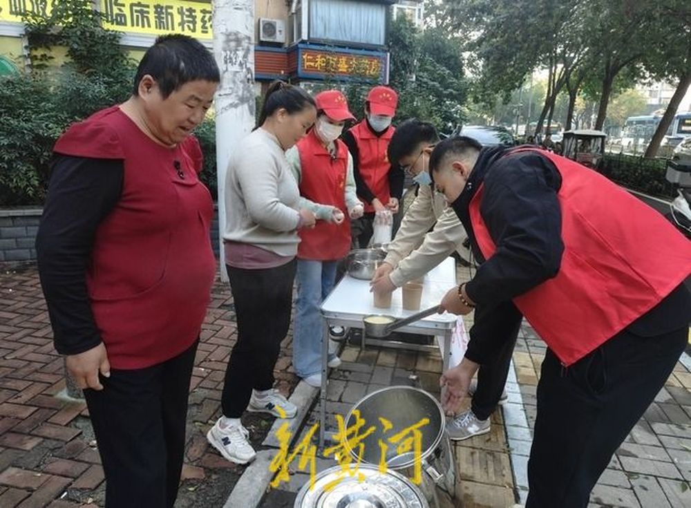10月14日上午7时,山东省立医院中心院区门诊大楼正对面,晨光中聚集了患者家属。志愿者们正逐份发放着今日的爱心早餐,一碗热腾腾的小米粥和一个鸡蛋。
