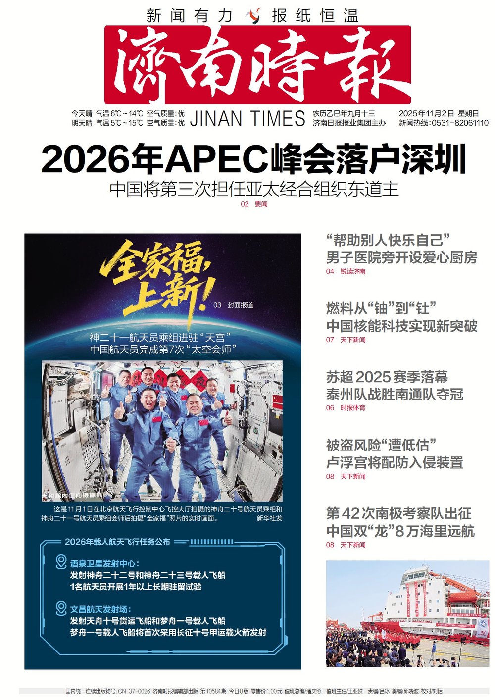 ● 11月1日,神舟二十一号航天员乘组顺利进驻“天宫”,中国航天员完成第7次“太空会师”。