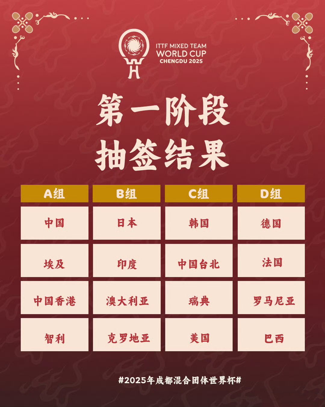 ●29日,2025年成都国际乒联混合团体世界杯第一阶段抽签结果出炉。根据赛程安排,中国队将在今天(30日)11时迎来首个对手中国香港队。