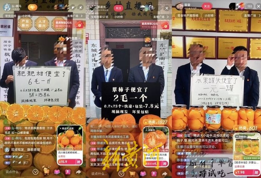 ●28日,新黄河以《不存在的县、虚假的合作社牌匾、多账号使用相同录播素材……消费者:这些账号是用“助农”幌子做“卖货”生意?》为题,报道了“么~啊马”“那道光”“雷雷”等视频账号通过使用相同录播素材、直播间背景悬挂虚假“经济合作社”标识牌进行带货,误导消费者认为其是官方助农直播间的情况。29日,新黄河记者从上述主播涉及的短视频平台了解到,上述账号借政府名义助农带货,涉虚假宣传,平台已依据相关规则永久封禁其电商权限。详情>>