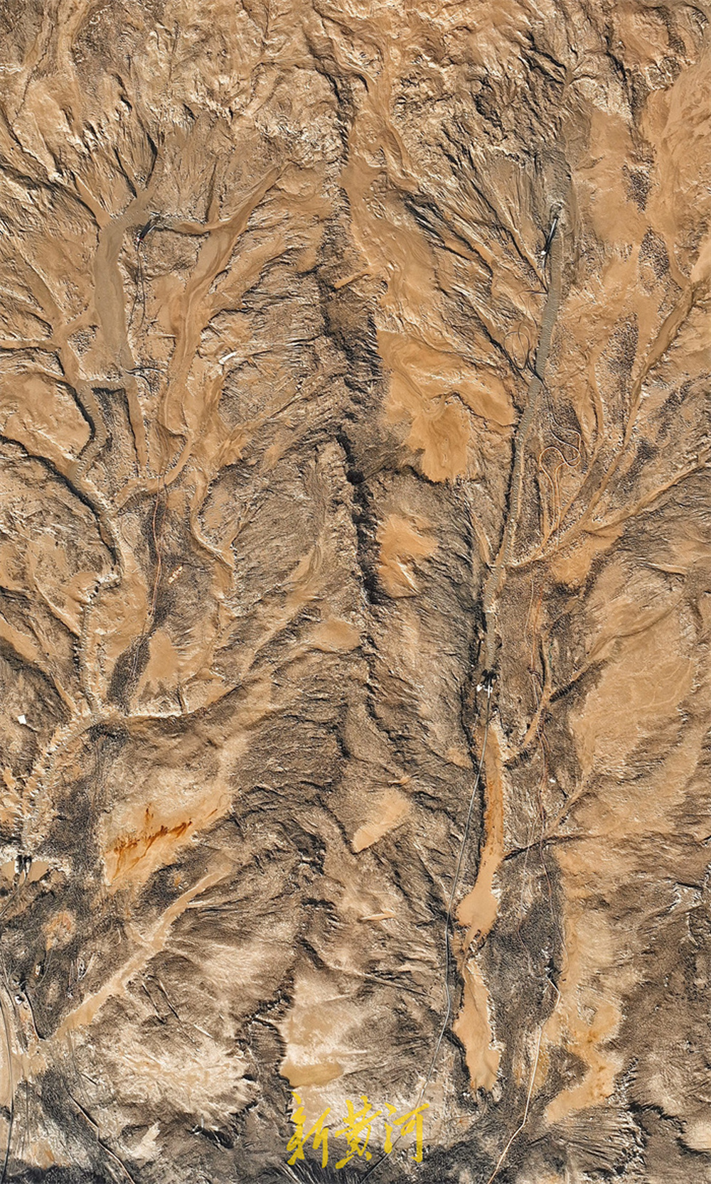 近日,济南黄河北岸的鹊山水库沉砂池出现“潮汐树”景观,从空中俯瞰,水流冲刷出一条条深浅交错的沟壑,如同参天大树扎根大地,栩栩如生,在冬日暖阳下,展现出黄河独特的自然之美和生态之美。
