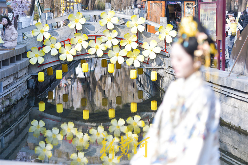 1月23日,随着农历春节的脚步日益临近,济南明府城老街的传统年节装饰已陆续上新。古色古香的街区被精心装点,大树与小桥上挂满了一串串明黄色的灯笼,配以花瓣造型的装饰灯,营造出温暖喜庆的节日氛围。多图>>