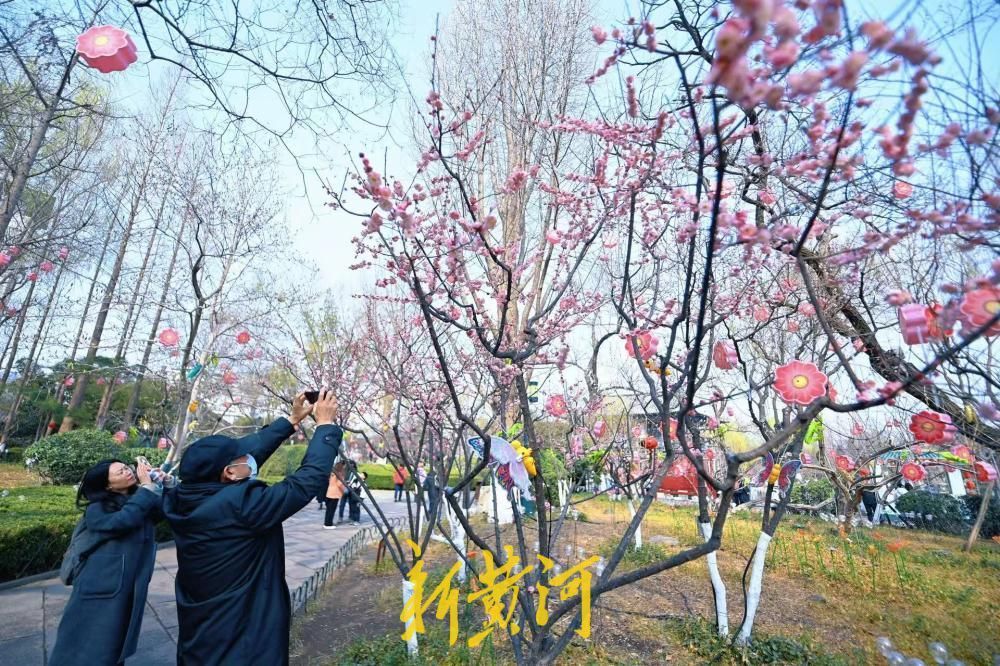 2月27日,济南五龙潭泉池南侧的红梅竞相开放,在泉水的滋养下,格外娇艳,花朵在春风中轻轻摇曳,吸引了众多游人踏春赏梅,拍照留念,记录下这美好的瞬间。