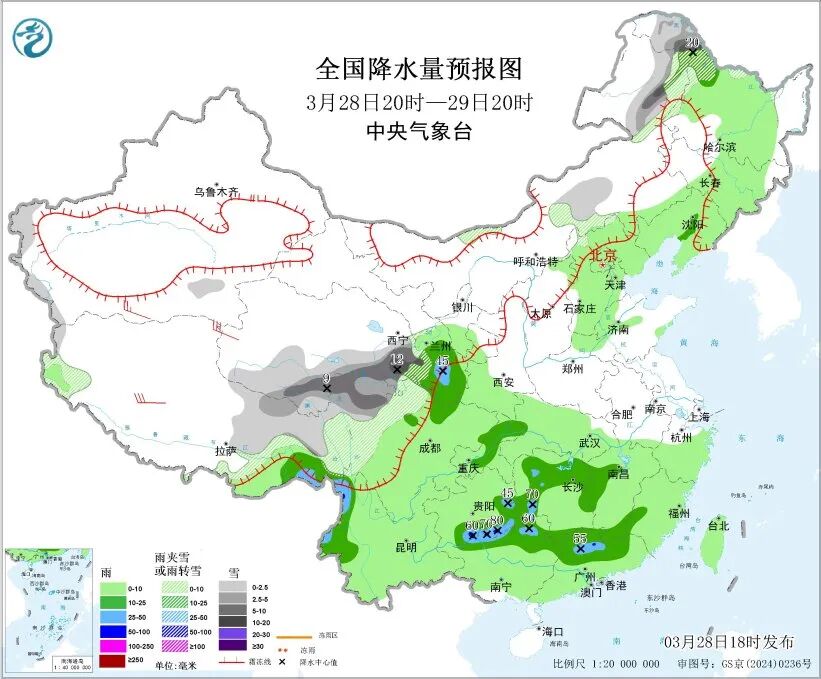 ● 中央气象台预计,28日夜间至31日,西南地区东部、江汉南部、江淮、江南、华南北部等地有较强降雨,其中,贵州东部和南部、湖南北部和西南部、江西、广西北部、广东北部、福建中北部等地部分地区有大雨或暴雨、局地大暴雨。