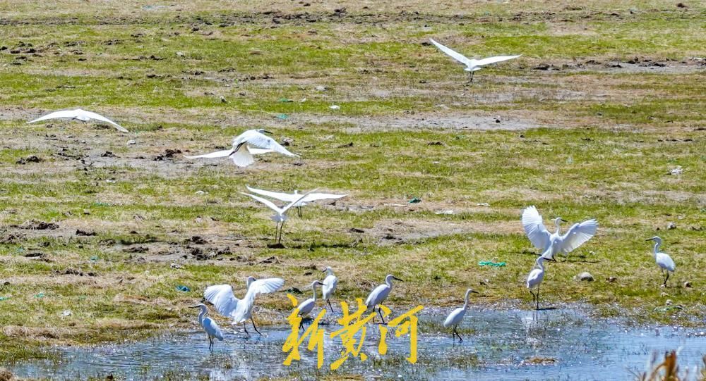 ●浅水湿地水草丰茂,数十只鹭鸟翔集嬉戏济南玉符河