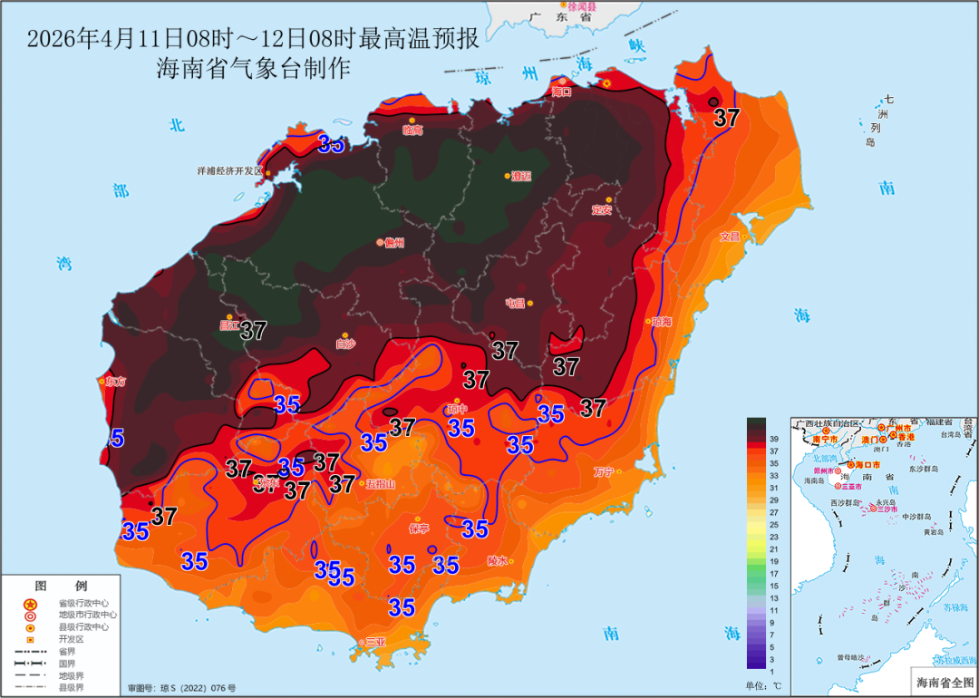 ● 海南省气象台消息,11日中午,海南澄迈、临高、儋州、昌江、白沙,五个市县发布高温红色预警信号,当地部分乡镇当天白天最高气温将升至40℃以上。