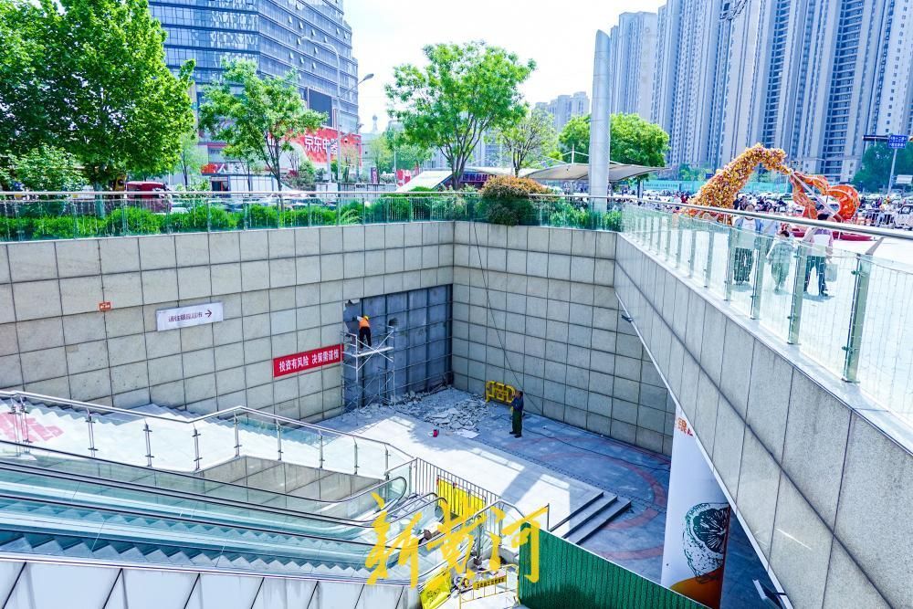 4月19日,在济南经十路和谐广场门前的露天下沉广场处,进出通道已设置起施工围挡,施工人员开始对下沉广场东面墙体上的装饰石板进行拆除,为下一步凿开钢筋混凝土墙作准备。和谐广场南侧紧邻济南地铁4号线五里牌坊站,目前正在实施商场与地铁4号线的接驳工程。商场将通过人防综合体实现地铁站与商场的物理联通,届时市民乘坐地铁4号线出站后,无需经过地面道路,即可直接进入和谐广场下沉广场,实现真正意义上的“出地铁即入商场”。详情>>