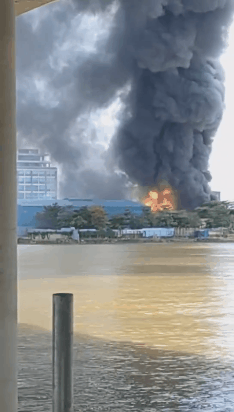 网友发布的视频显示,广东东莞市中堂镇东向村一家工厂发生火灾,明火猛烈燃烧并伴有浓烟,现场不断传出爆炸声。