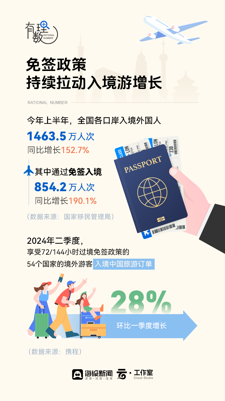 数据显示,72/144小时过境免签政策正在持续拉动入境游增长。