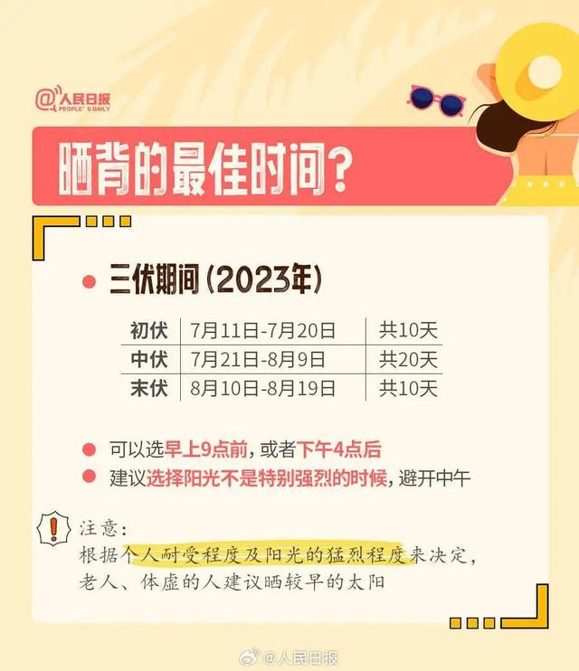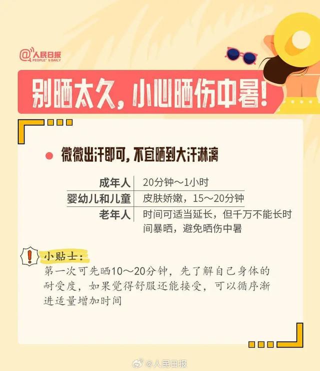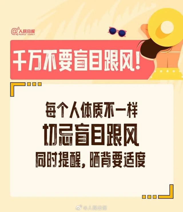 sweetgirl--om: 我晒背了一星期了,早上太阳没那么强的时候晒,头部包防晒帽(头部阳气最盛不能晒),根据时间,身体状况晒,哪里那么容易中暑,晒后腰臀部一直暖暖的特别舒服。