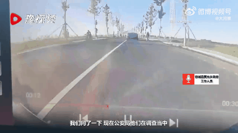 一段涉事汽车的监拍视频显示,8月11日早晨6时多,其以52km/h左右的速度在道路上行驶,前方不远也有小车在行驶,道路两旁都有一条虚线。在匀速行驶中,对面车道有一群骑行人员驶来,其中有一人不慎摔倒,该小车未能闪躲开,碾过该摔倒的人。