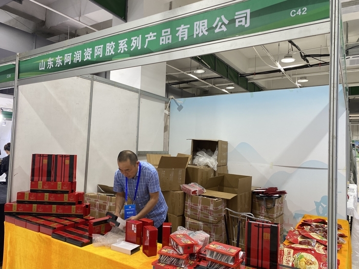 与“德州扒鸡”展位情况类似,“东阿阿胶”展位同样受到了游客们的欢迎,足可见“山东美食”的强大吸引力。