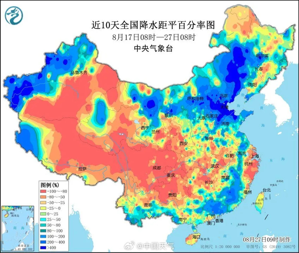 不过最近10天(8月17~27日),塔里木河上游降水偏多了4倍以上。