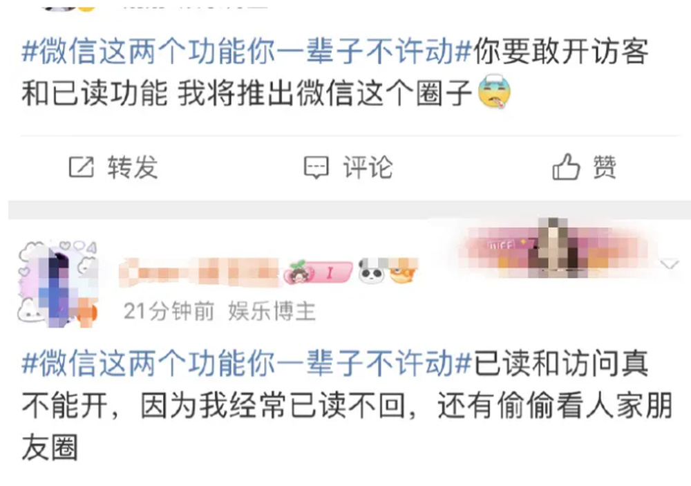 事实上,关于微信新功能的相关内容在网上一直备受关注。此前,“微信这两个功能你一辈子不许动”相关话题曾在微博引热议。这两个功能分别是“聊天已读”和“朋友圈访客”。部分网友认为,这类功能会破坏社交边界,导致心理负担。甚至有网友表示,“如果微信出了,我就卸载”。