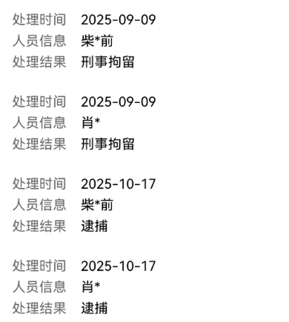 网红柴怼怼及其妻子肖某销售伪劣产品一事有新进展。10月17日,南都·湾财社记者从此前举报柴怼怼的消费者处获悉,浙江公安官方公众号关于此案进度的查询页面显示,柴怼怼及肖某于10月17日被逮捕。