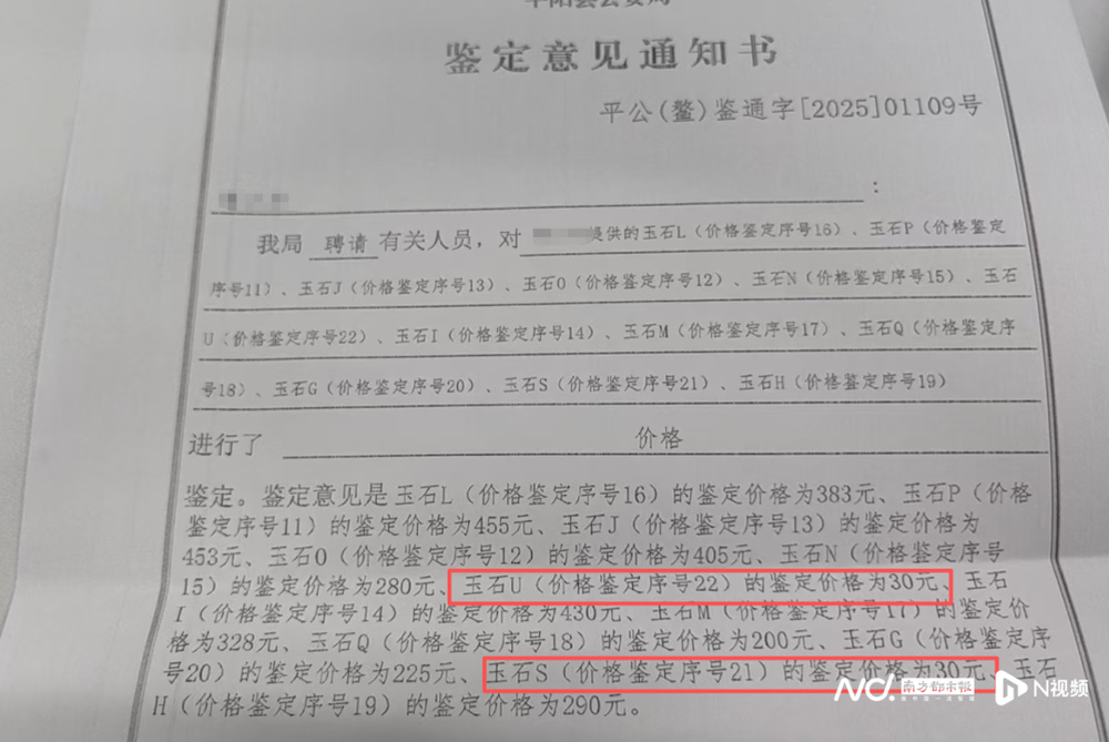 据介绍,消费者共向属地派出所寄出玉石样品130多件,但办案人员反映只有30件能出鉴定报告,这意味着,剩余100多件都没有鉴定的意义,属于次品。平阳县公安局还对39块玉石进行价格鉴定,大多集中在30元~455元之间,还有1块玉石价值2428元。