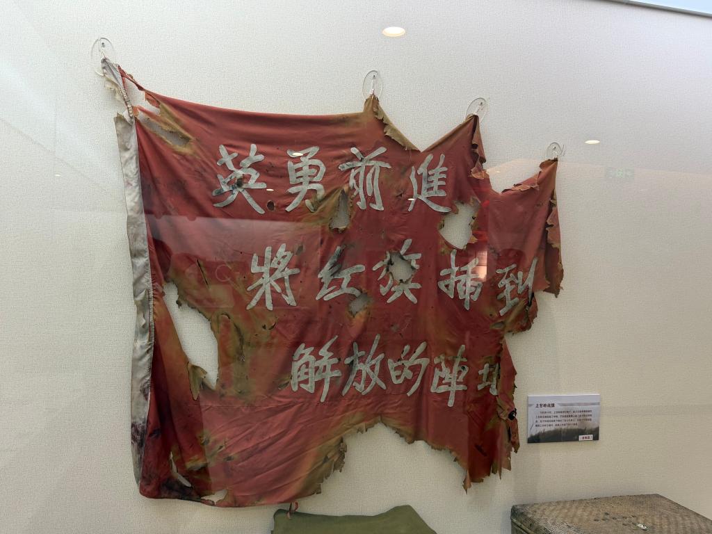 这是沈阳抗美援朝烈士陵园纪念馆中展出的上甘岭战旗(复制品)。新华社发