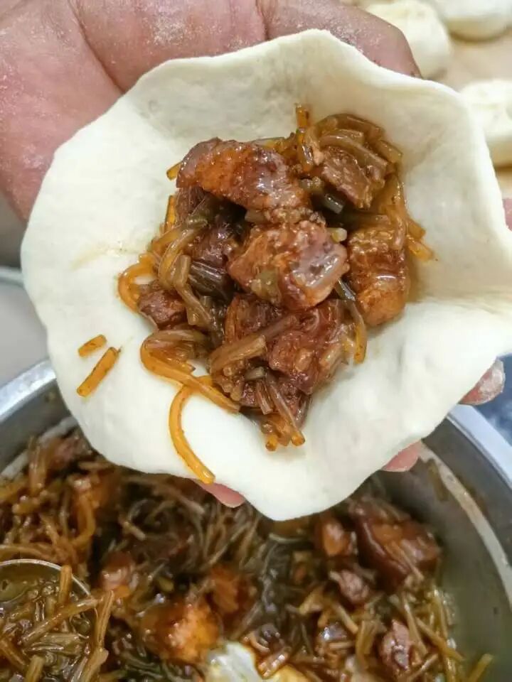 赵唯宏说馅料大有讲究。“比如土猪肉包,加了葱姜,拌料的时候放入一点点,吃起来更加有嚼劲,除去了腥味,但客人吃不出来葱姜味。红烧肉包里好几块大肉,每次都要熬制2小时以上,牛肉包里还会加一点点青萝卜,胡椒水等配料。,再比如胡萝卜豆腐粉丝包,豆腐我们会稍微煎一下,剔除水分。”