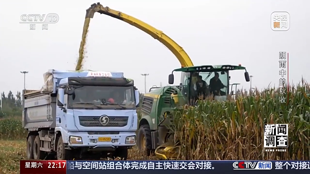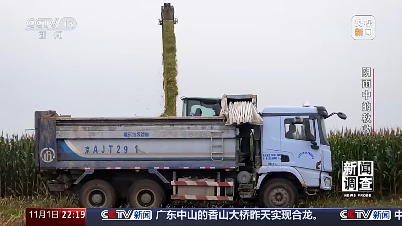 通常情况下,玉米的种植品种按照收益排序为籽粒玉米、棒子玉米和青贮玉米。所谓青贮玉米,指的是主要用于饲料种植的玉米品种,收割时将整株玉米一次性完成切碎,制成青贮饲料。沈兴新的这8000亩地之前按照籽粒玉米和棒子玉米播种,但眼下连绵的秋雨,为了及时止损,他决定将2000亩的玉米按照青贮玉米收割。
