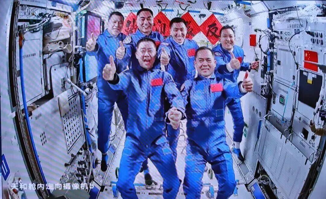 神二十与神二十一航天乘组会师空间站。图源:中国载人航天微信公号