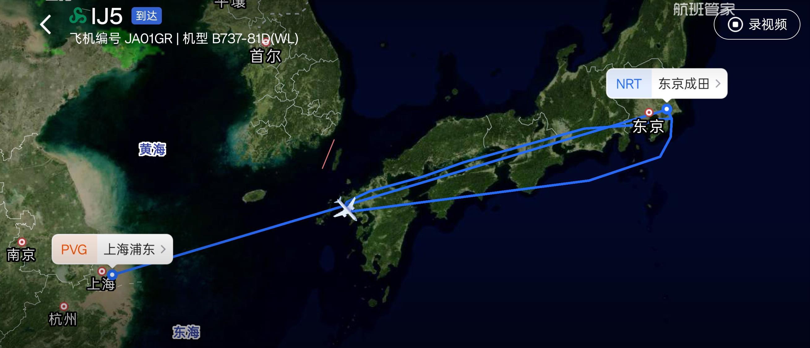 航班管家APP显示,该航班的航次已变更为IJ005D,计划于当地时间2日上午10时由东京成田机场起飞,当地时间12时40分落地上海浦东机场。