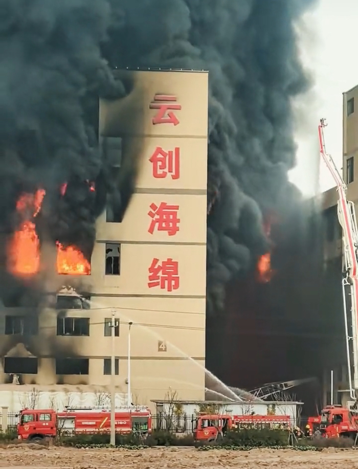 12月22日,多位网友上传视频称,浙江丽水经济技术开发区“云创海绵”公司发生火灾。