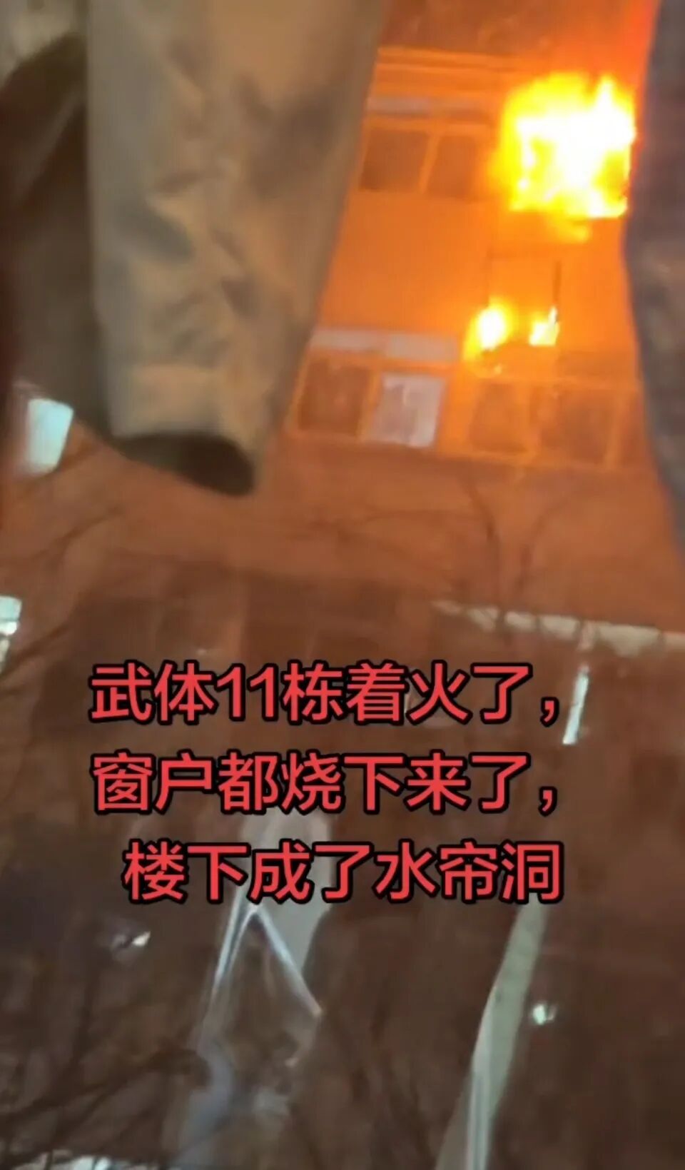 1月2日深夜,武汉体育学院一栋宿舍楼发生火灾。据现场人员拍摄的视频,火焰从顶楼一间宿舍窗户往外窜出,整面窗户被火焰覆盖,窗框被烧得坠落。在宿舍楼内部,低层因漏水变成“水帘洞”,地面出现积水。