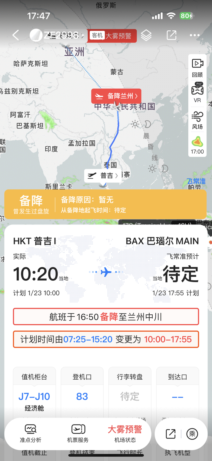 根据飞常准显示,该航班备降兰州中川机场。17时,新黄河记者致电兰州中川机场,工作人员表示,该航班还在盘旋中,还未降落,具体原因还不清楚。