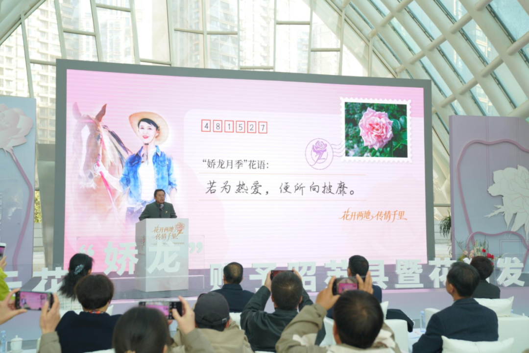 2月2日,“花开两地 传情千里”——云花“娇龙”赠予昭苏县暨花语发布仪式在云南日报报业集团举行,广大网友关注的“娇龙”月季花语征集结果正式发布,“若为热爱,便所向披靡”成为“娇龙”月季的官方花语。