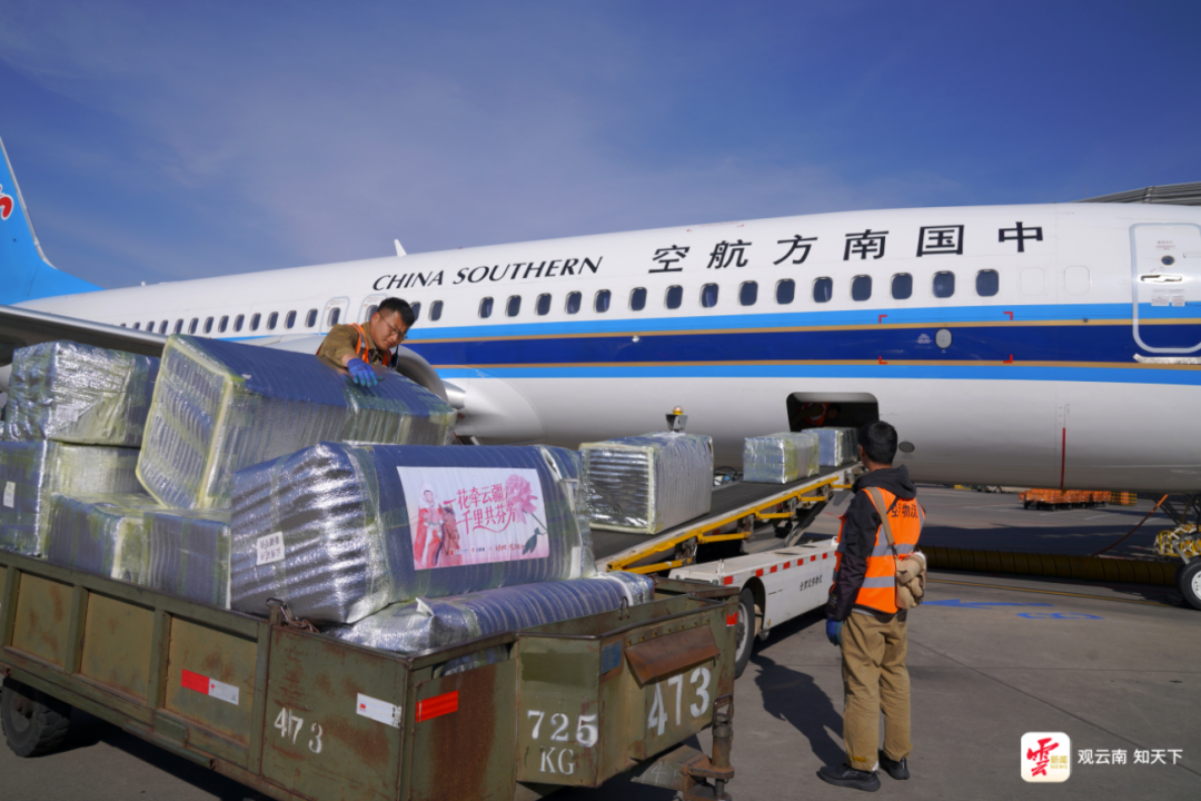 2月1日,工作人员将鲜花装机。云新闻记者陈创业 摄