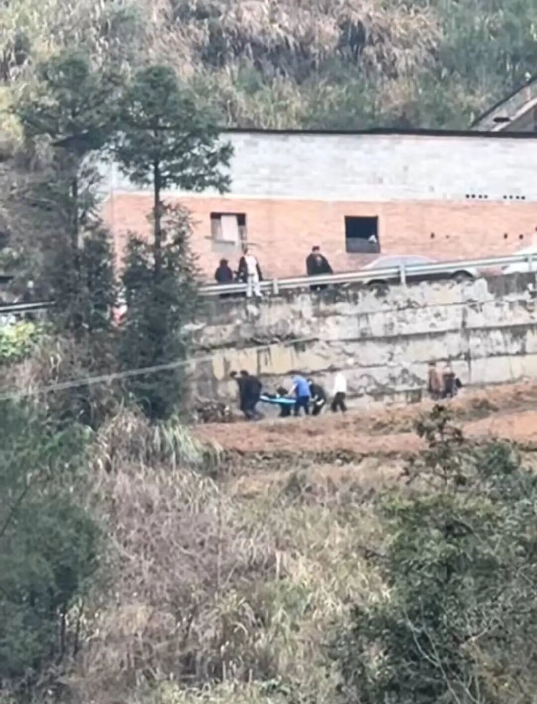 事发时附近村民拍摄的视频也显示,在山脚下,消防、120急救人员纷纷赶到,在坠崖地,众人将伤员从崖底抬上盘山路。