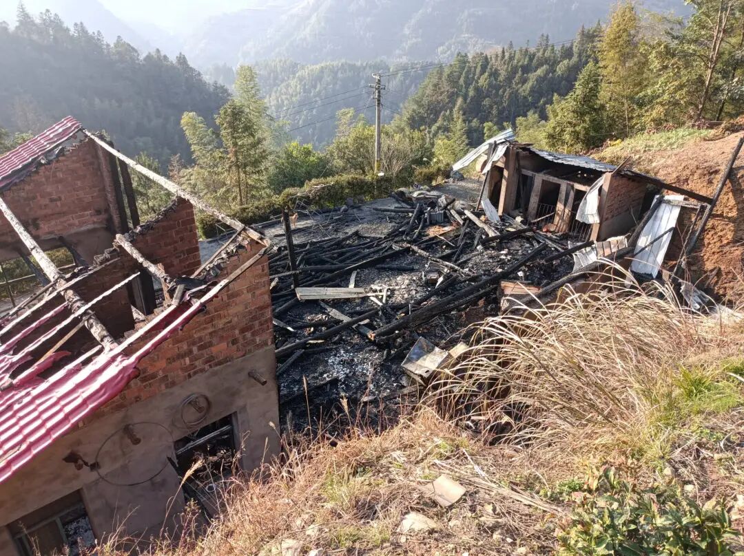 “什么都没有抢出来,衣服就只剩身上这一套。”张先生说,主屋是两层楼,平日一家人都住在一楼,二楼只在逢年过节时供亲友们住,他怀疑是电路问题导致火灾。早年,山上交通不便,连水泥路都没有,那个时候村里建的房子很多是木结构,后来大家才陆陆续续建了砖瓦房。他家的猪圈和厨房也是后来一点一点把砖拖上山建起来的。目前,他们已搬到亲戚家暂住。