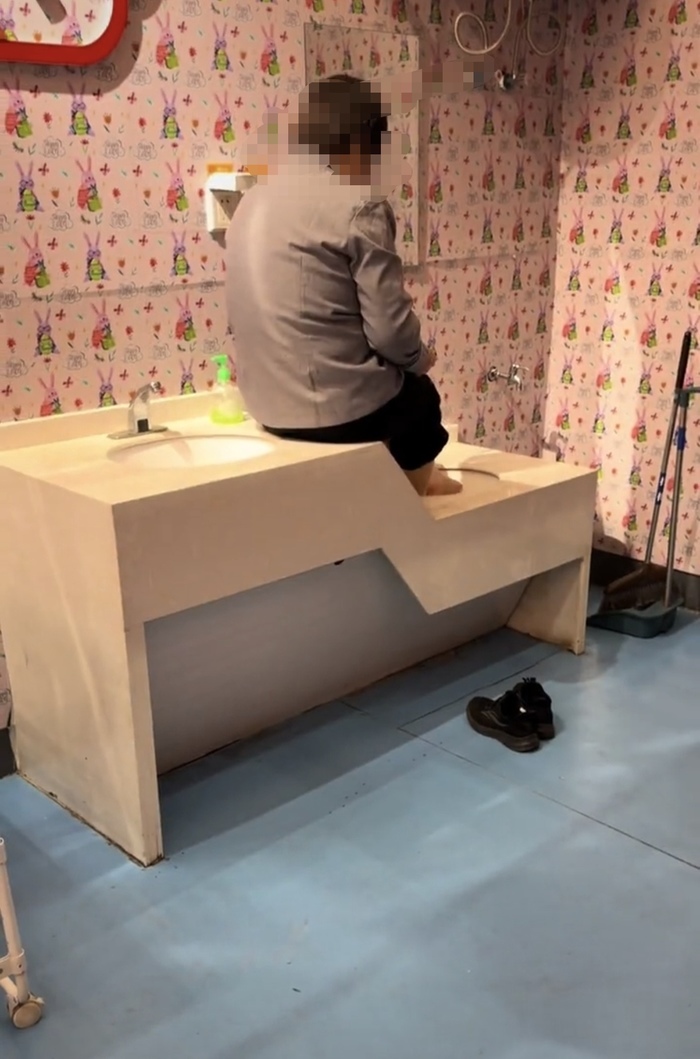 “本来想算了的,但是当妈的真是忍不了。”上述网友在其所发布的一段文字中写道:“在郑州东站的母婴室,宝宝吃奶后正在休息,一位保洁阿姨推门进来,看了我一眼后没有说话,就自顾自地坐在母婴室的水池上脱鞋子、袜子,开始泡脚。”依照该名网友所发布视频所示,记者注意到,一位身着疑似保洁制服的女士坐在洗手池上,将脱去袜子的双脚放在另一侧洗手池中进行冲洗、浸泡,洗手池旁的地面上放着一双黑色鞋子。