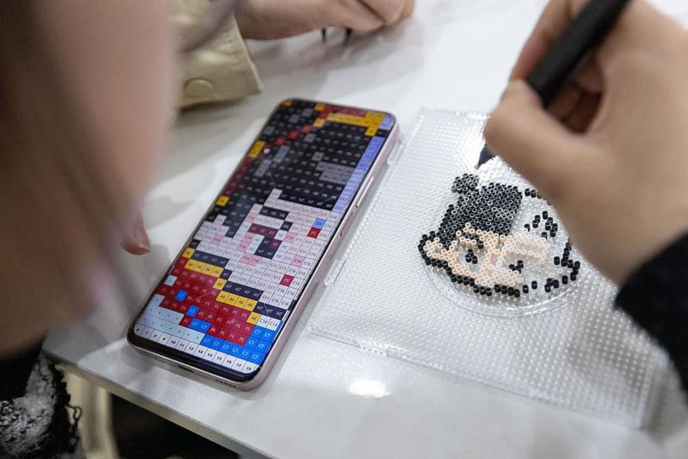 现在,白同学总爱约着好朋友一起来店里拼豆,大家围坐在一起创作,彼此分享想法和技巧,让拼豆作品成为交流的纽带。在她的带动和推荐下,身边也有越来越多的同学被这份手工乐趣吸引。