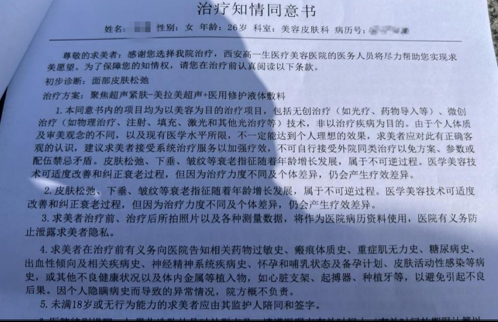 “我想收紧脸部,改善法令纹,但做完项目一点变化都没有。”26岁的小红于2025年12月花费6999元,在陕西省体育场附近一家名为“西安高一生医疗美容医院”的医美机构做“美拉美超声刀”项目,做完之后却感觉效果未达预期。