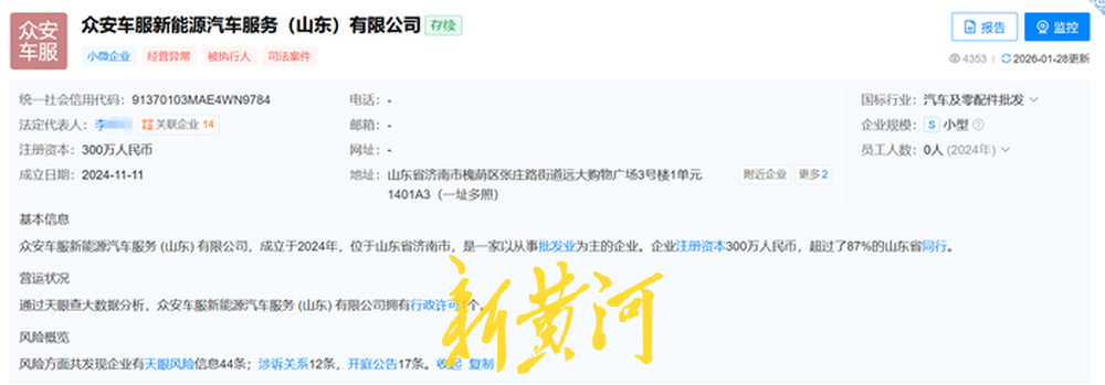 近日,记者首先根据天眼查信息,找到了这家位于济南市槐荫区远大购物广场3号楼的“众安车服”。注册地址门口不仅没有悬挂任何公司标识,且多次敲门都无人应答。事实上,该公司早在2025年9月5日就已因“通过登记的住所或经营场所无法联系”被当地市场监管部门列入经营异常名录。