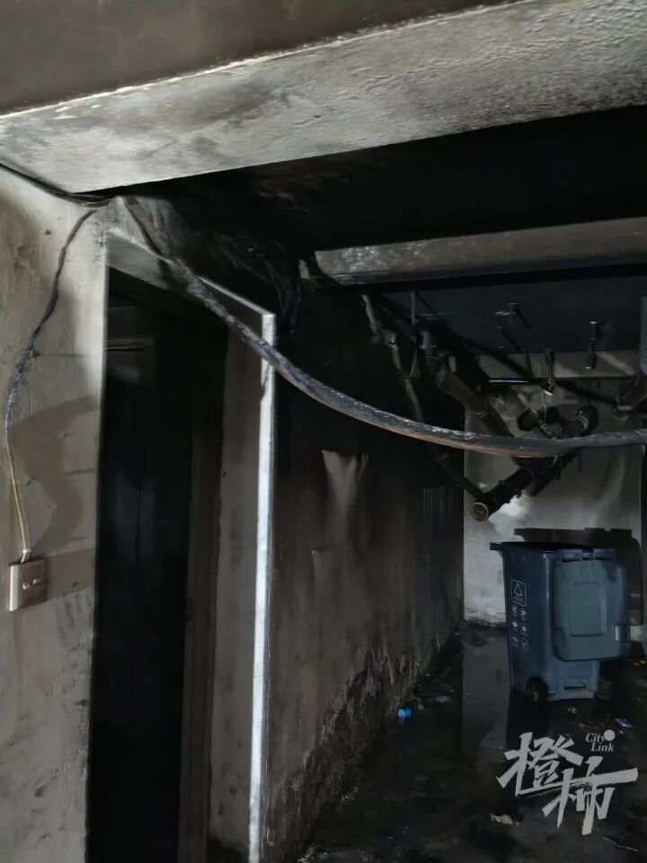 中午12:09,锦昌文华二期的物业公司负责人说,已经通知电梯公司来恢复启用电梯,正在赶来的路上,起火架空层内烧损的管道是排污管,也联系了公司,会来维修,架空层杂物和消防确认过,外面的都清理到地面,里面起火的那间并没有清理,都保留在现场等待消防勘查。“地下架空层去年有人住过,今年没有人住。公司的领导下午也会来小区。”