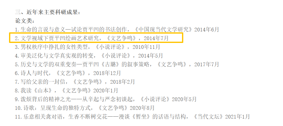 在贾浅浅“近年来的主要科研成果”中,排在首位的《生命的言说与意义一试论贾平凹的书法创作》同样存疑。