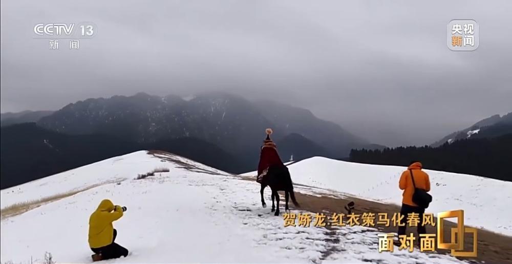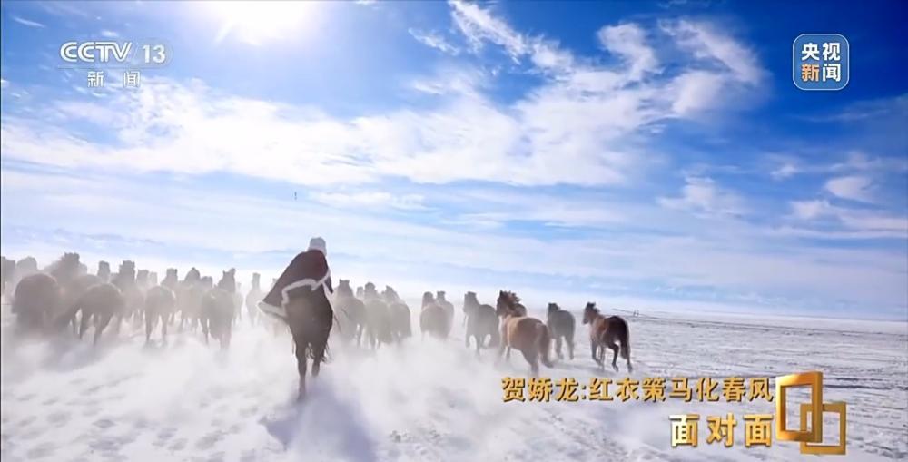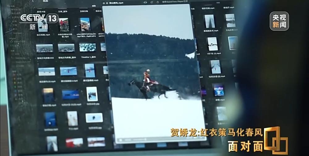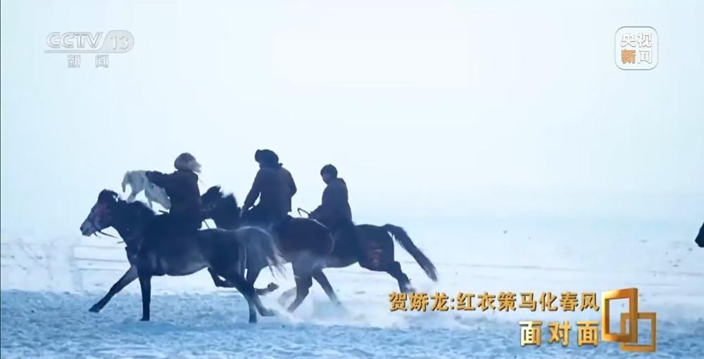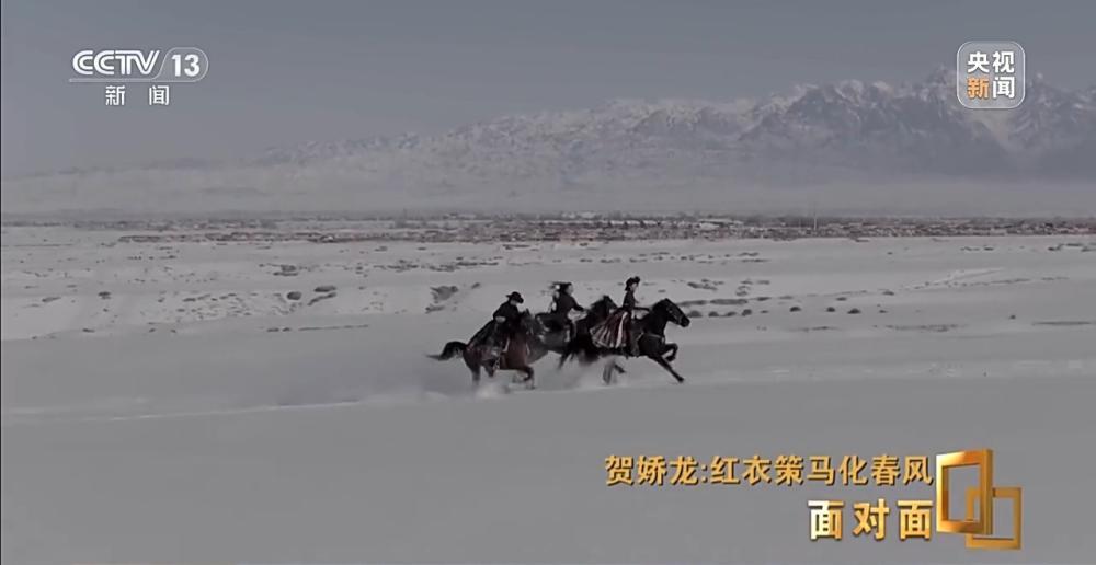 2020年,贺娇龙担任主管旅游的副县长,海沙尔在昭苏县融媒体中心做摄像。“策马雪原”这段视频,是海沙尔第一次为贺娇龙拍摄骑马的视频。
