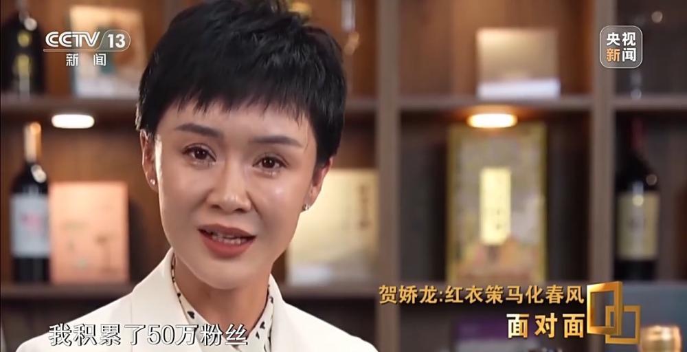 贺娇龙:老百姓嘲笑过我,你还带货呢,看你那几个粉丝,这个话是很扎心的,要强的我,不接受这个结果。平时工作又比较忙,那怎么办,为了不影响工作,我就每天早晨6时30分起来,7时开始直播,播到9时30分刚好两个半小时,我就去上班。这样持续了半年,我积累了50万粉丝。