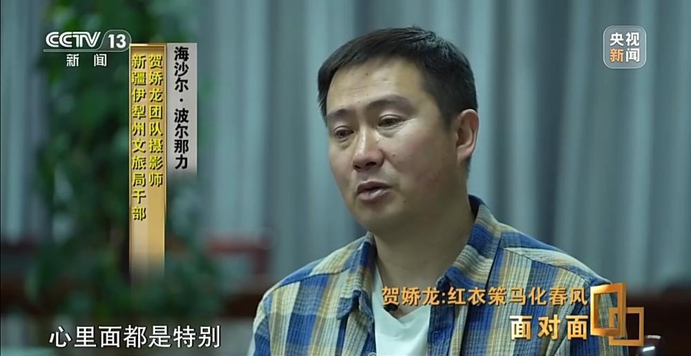 新疆伊犁州文旅局干部 贺娇龙团队摄影师 海沙尔·波尔那力:我现在还没走出来,满脑子都是,我电脑里面80%以上全是贺主任的视频,满桌面都是,资料库都是,还有好多素材都还没发出来,主任就走了。