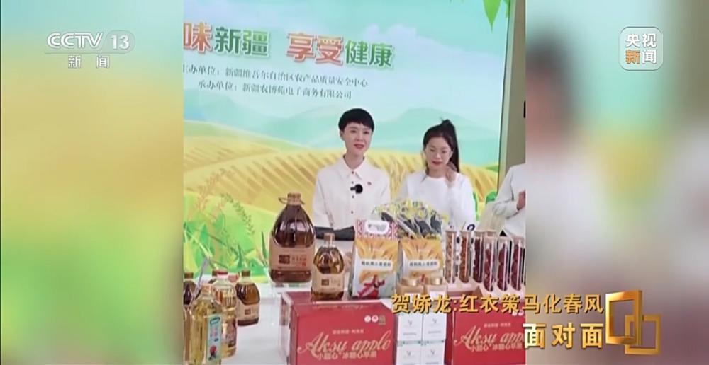 贺娇龙:我们那一场,把昭苏县的蜂蜜,奶酪,粉条,菜籽油,卖了200万元。这一刻我们县里的干部群众高兴极了,我和我的团队也高兴极了,我们终于成功了。