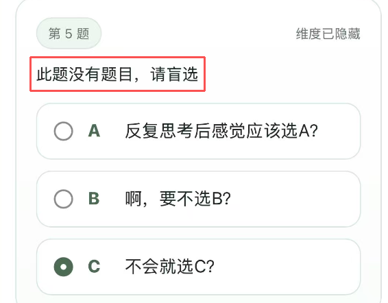 有网友调侃,与正规测试不同,问题也很“无厘头”: