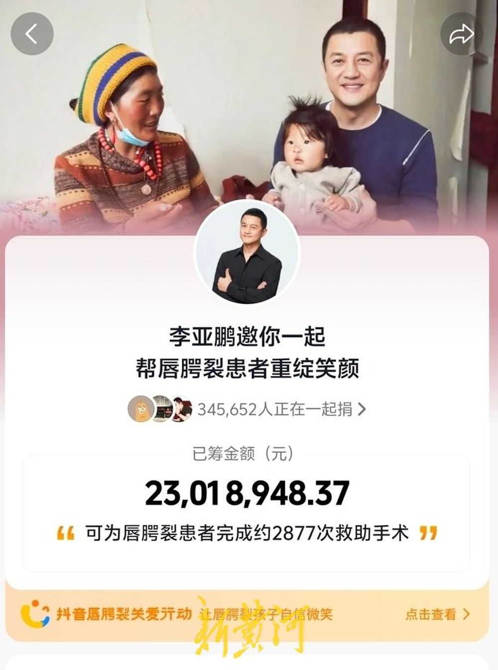 李亚鹏还提到,今年是嫣然天使基金成立20周年,已完成16000余例的全额免费的唇腭裂手术。关于此次大量的捐助情况,他提到2026年底会公布救助成果。他也谈到,医院不是自己一个人的,十几年包含了数万的捐赠人,会尽全力。