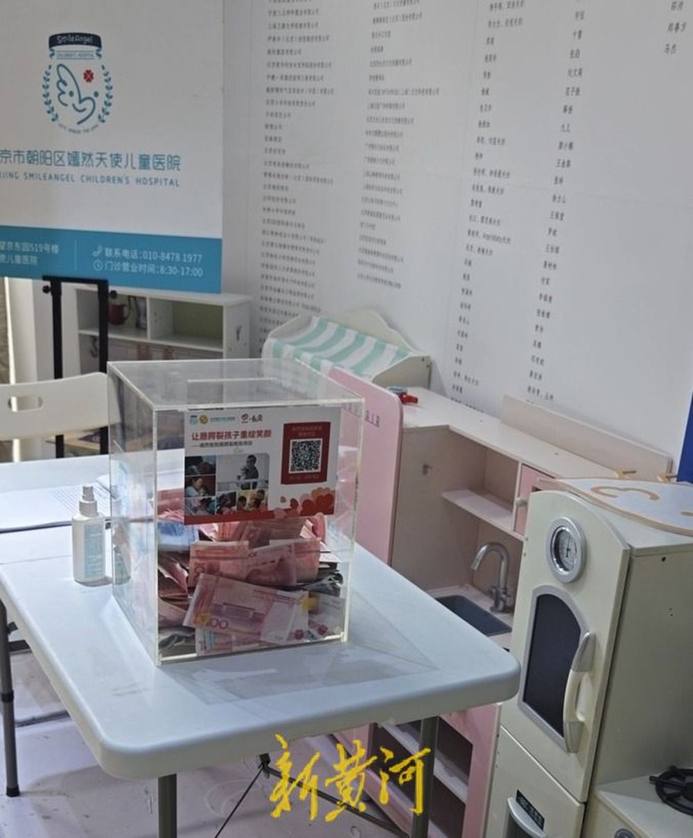 嫣然医院一楼大厅设置的捐款箱。新黄河记者 李运恒 摄
